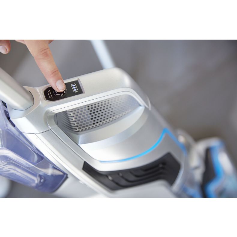 Cet aspirateur sans fil dispose d’une brosse rouleau multi-surface et d’un filtre lavable qui vous facilite l’entretien. L’appareil est équipé d’une technologie à double réservoir amovible, l’un à eau sale et l’autre à eau propre de 0,82 litres.
