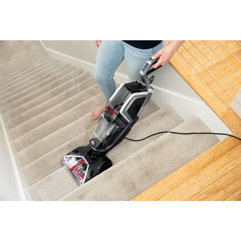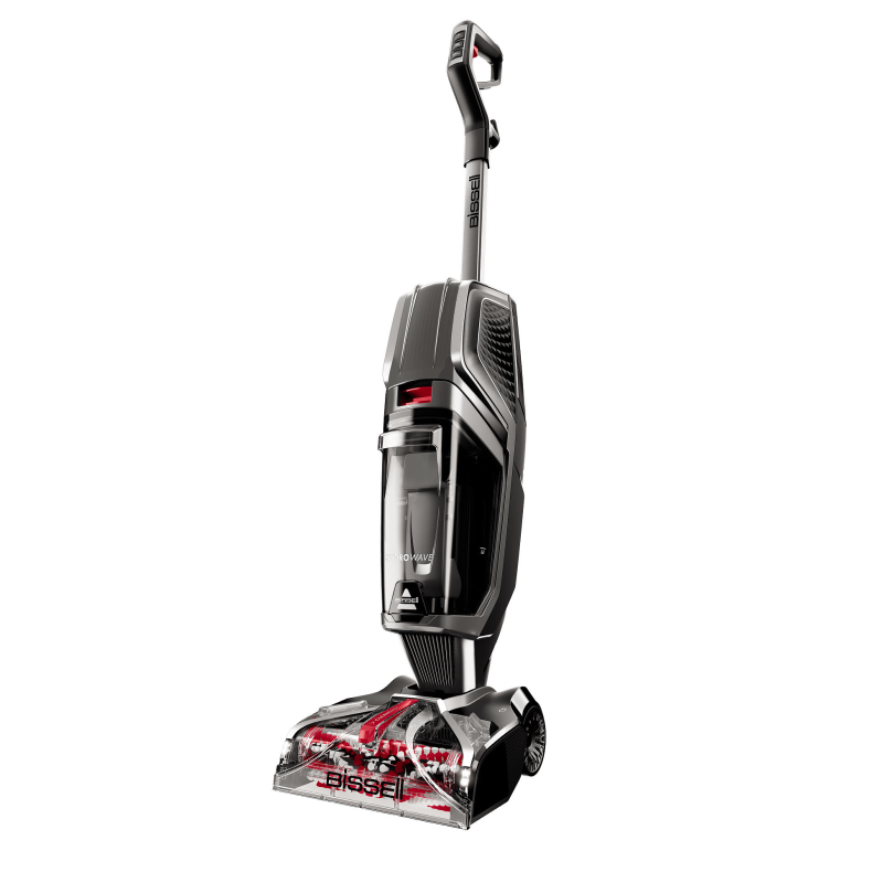 Le BISSELL HydroWave™ retient plus d'allergènes et de bactéries que l'aspirateur seul. Le rouleau à brosses motorisé XL à 10 rangées de poils détache et enlève activement la saleté des tapis/moquettes pour un nettoyage en profondeur.