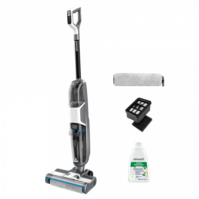 Le CrossWave HF3 est équipé d’une brosse rouleau multi-surface très efficace et d’un filtre que vous pouvez nettoyer facilement à l’eau.