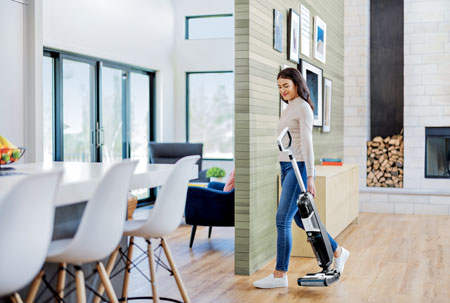 L'aspirateurs CrossWave HF3 aspire, lave et sèche tous vos sols durs.