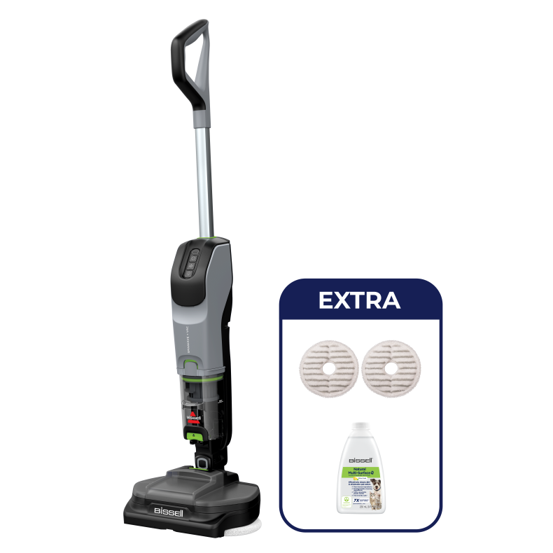 Après le nettoyage, l'entretien de votre appareil est simplifié : videz le réservoir des saletés sèches et mettez les MopPads à la machine pour les réutiliser. Offrez-vous et à vos compagnons à quatre pattes un cadre de vie sain et brillant de propreté avec le BISSELL® SpinWave® + Vac Pet Select, l'innovation au service de votre confort, quelle que soit votre situation.